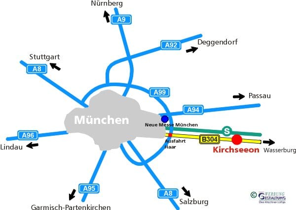 Der Markt Kirchseeon liegt im Voralpenland und ist wegen seiner hügeligen und waldreichen Umgebung ein beliebtes Wanderziel der Münchner Bevölkerung. Der S-Bahn-Anschluss an das Münchner Netz macht das Wohnen in Kirchseeon besonders attraktiv. Er liegt etwa 25 km südöstlich von München, direkt an der B 304 München-Wasserburg und eingebettet in die Voralpen-Endmoränenlandschaft. Zur Autobahn Berlin-Salzburg über die Anschlussstelle Haar sind es nur 15 km. Zum Markt Kirchseeon gehören die Ortsteile Kirchseeon-Dorf, Eglharting, Riedering, Ilching, Buch, Forstseeon und Osterseeon. Kirchseeon liegt etwa 560 m über dem Meeresspiegel.